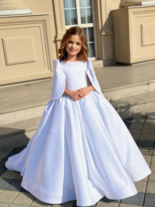 Girls Puffy White Dress with Red Sequin , Flowers and Hearts"